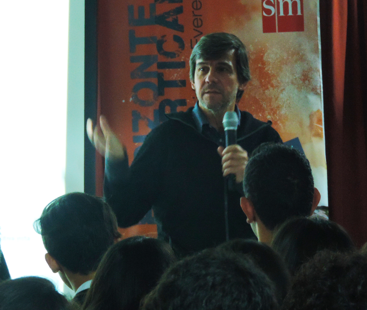 En el marco de la presentación de su libro Horizonte Vertical, escrito en coautoría con Marcelo Simonetti, Jordán conversó con los estudiantes de III° y IV° sobre los aprendizajes de vida que le ha dado el montañismo y en particular sus ascensos al Monte Everest.